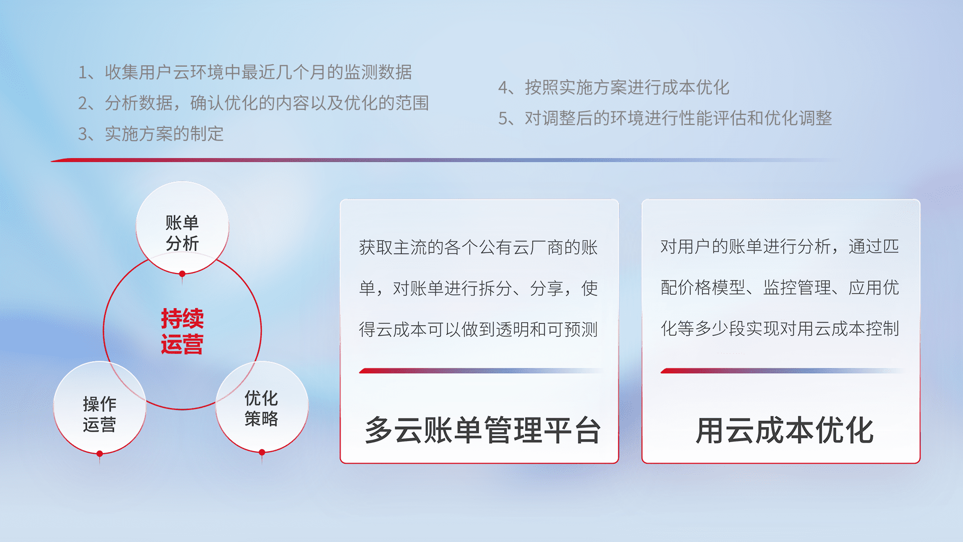 运用智能化工具分析云资源,,,,提供日常费用可视化工具,,自动账单拆分,,,,成本优化云上费用,,,,降本增效。。。